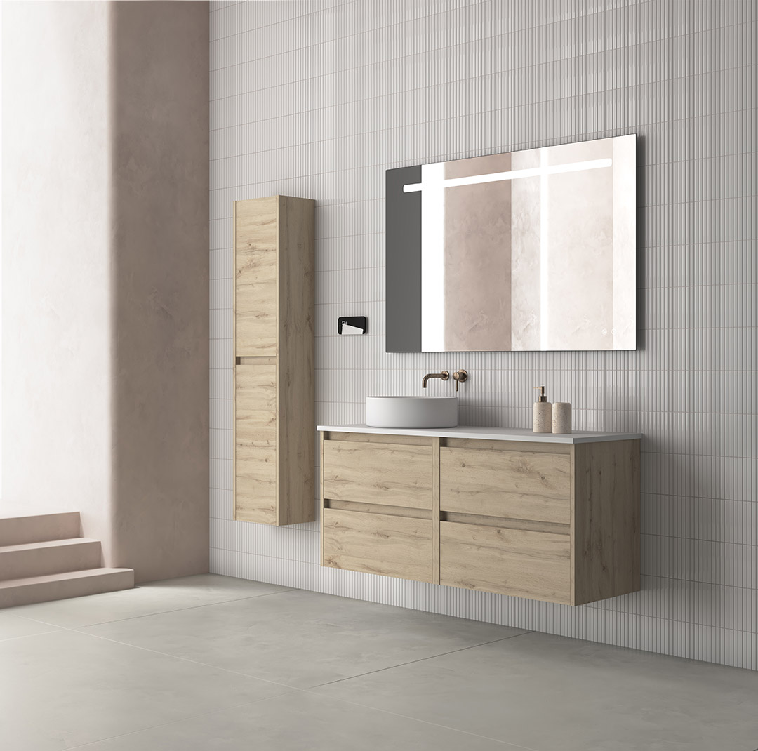 Nuestros muebles y complementos no solo aportan elegancia, sino que también optimizan el almacenamiento, facilitan el orden y se adaptan a tu ritmo de vida. Cada detalle cuenta para que tu baño sea un espacio armonioso y plenamente funcional.